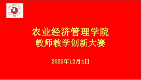学院为进一步加强教师教学改革创新,展示我院教师教育教学改革成效,推动人才培养质量不断提高。根据学校“以赛促教,以赛促改”的年度工作任务要求,学院研究决定于2025年12月4日举办“农业经济管理学院教师教学创新大赛活动”。学院的40周岁以下的9位青年教师参加了比赛。