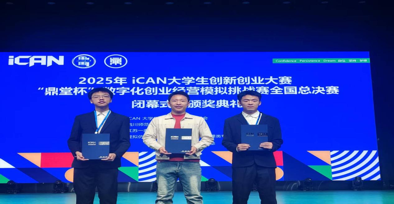 为助力数字经济时代教育体系高质量建设,培养创新性人才,2025年iCAN大学生创新创业大赛数字化创业精英模拟挑战赛全国总决赛暨经管学科数智化教学改革研讨会于11月7日至9日在四川师范大学成功举办,本次比赛吸引了来自全国397所高校的两万多名学生报名参赛。我院学子杨燕涛(队长)、郝彦凯组成的参赛队伍荣获国赛二等奖。