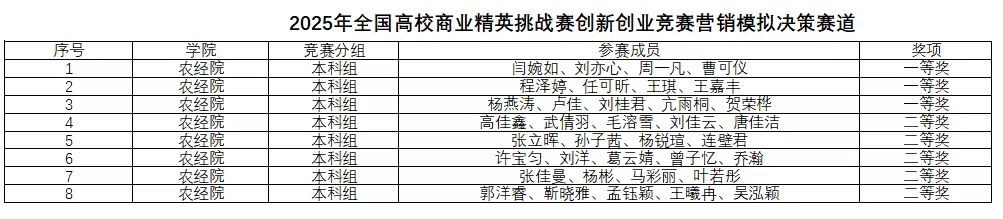 11月9日,2025年全国高校商业精英挑战赛创新创业竞赛营销模拟决策赛道全国总决赛圆满收官。山西农业大学农业经济管理学院学子在赛事中大放异彩,以卓越的创新巧思与高度契合的团队协作交出高分答卷,尽显强劲实力。