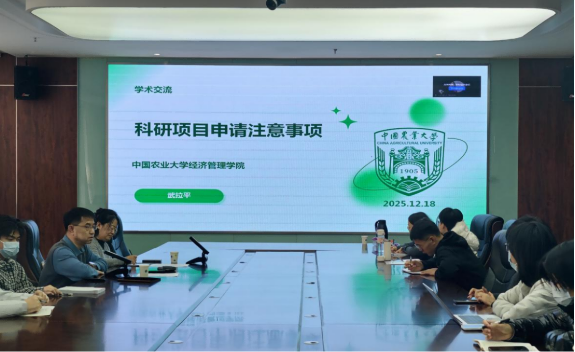 为进一步提升学院教师国家级科研项目申报质量,2025年12月18日,山西农业大学农业经济管理学院第六期青年论坛特邀中国农业大学经济管理学院武拉平教授,开展以国家自然科学基金和国家社会科学基金项目的申报要点解析及申报题目修改辅导为主题的专题讲座。学院全体青年教职工、科研骨干及研究生参加了本次学术活动。
