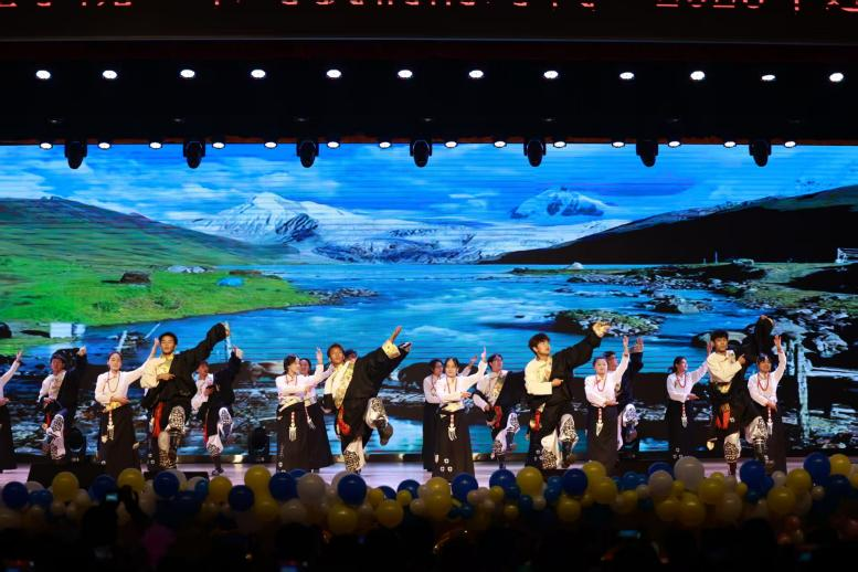 朗诵《以青春之声,咏华夏脊梁》与歌曲《灯火里的中国》交织呈现,让青春意气与民族风骨、气壮山河的誓言与万家灯火的温暖相融;舞蹈《向暖而生》以灵动舞姿勾勒出失意中藏希望、寒冷遇温暖的积极内核;歌曲串烧《种下一个明天》用流动的旋律捕捉多样心境;小品《流量赋能》,生动展现了乡村振兴中“流量”从“纸上谈兵”到“脚下有路”的转变,趣味与思考兼具;歌曲《星辰大海》传递出奔赴民族复兴征途的坚定信念;非遗表演《拳锋戏彩,国风新篇》以拳脚刚劲与脸谱斑斓展现传统文化的惊艳;藏族舞《牧人风采》带来雪域高原的独特风情,诉说高原故事与蓬勃生命力。