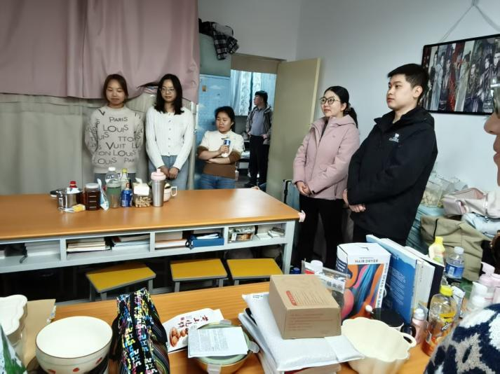 走访过程中,老师们细致查看了24级学生的住宿环境,详细询问了宿舍设施配备、日常起居及卫生维护等情况,叮嘱同学们要保持宿舍整洁通风,养成良好的生活习惯,共同营造安全、舒适、温馨的寝室氛围。