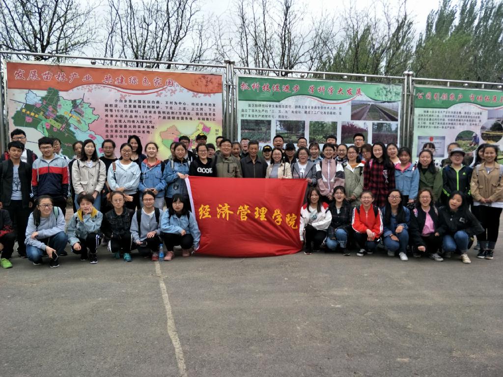 4月21、22日,学院组织学生赴太谷县小白乡绿美园林绿化工程有限公司进行教学实习,此次实习由林学概论课教师王林和辅导员郝旭燕带队,大一农林经济管理、农村区域发展专业、旅游管理专业150余名学生参加。