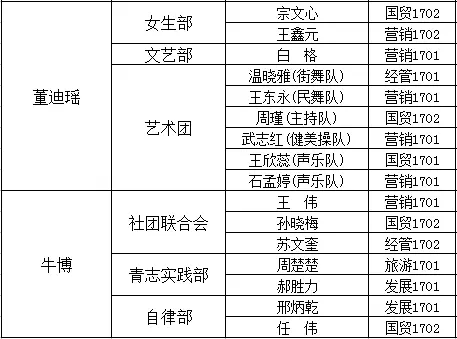 以上拟任学生干部试用期为三个月。 试用期间,可通过来信、来电等方式向学生会反映试用对象在品德、才干等方面存在的问题。所反映情况和问题应做到实事求是、客观公正。同时,为便于核实与反馈有关情况,提倡反映人提供真实姓名和联系方式,我们将严格履行保密义务,并对所反映的问题进行反馈和公示。
