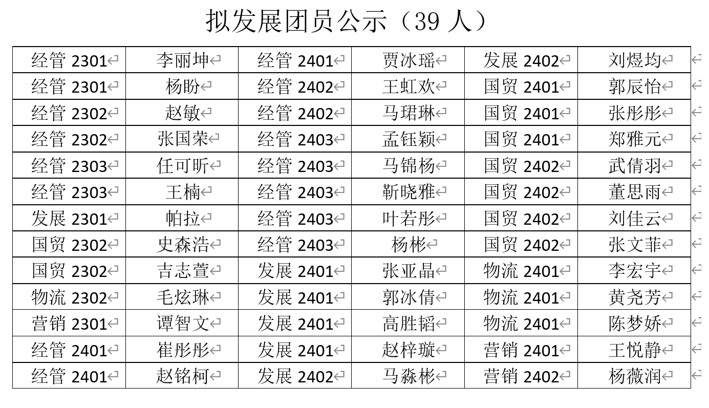 根据《共青团山西农业大学校团委关于开展2025年推优入团办法》开展推优入团工作,经过个人申报、学院团组织审核,现将农经院2025年下半年拟发展团员名单进行公示。
