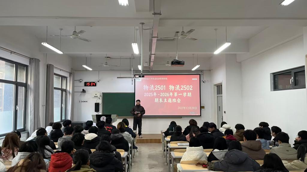 为引领新生学习党的二十届四中全会精神,帮助新生明晰期末备考要求、筑牢思想与安全防线。12月26日-12月30日,农业经济管理学院2025级各班级分别召开期末主题班会。分团委副书记李二雷、25级辅导员陈凯钰主持,全体大一新生参加。