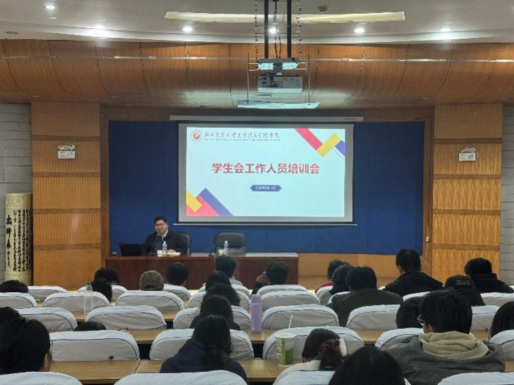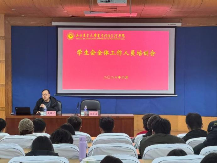 为强化学生会工作人员责任与服务能力,打造高素质学生干部队伍。3月18日,农业经济管理学院于博远堂举办学生会工作人员培训会。分团委书记武路广、22级辅导员李玲玉出席,学生会全体工作人员参与。