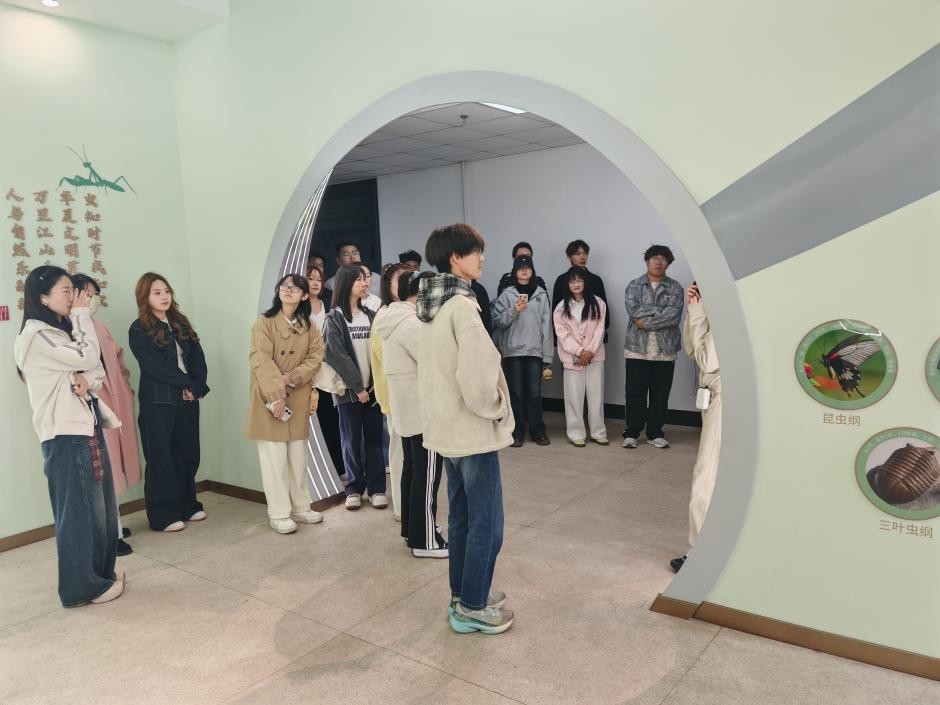 在专业讲解员带领下,同学们参观昆虫馆六大主题展区,观察昆虫标本与活体,学习昆虫生态价值及在农业生产中的作用,聆听昆虫与传统农事、节气物候的关联故事,感受农耕文明与自然生态的共生智慧,结合专业主动提问,实现理论到实践的认知转化。随后,在现场开展问答与心得交流,同学们围绕昆虫习性、农业可持续发展等话题踊跃发言,讲解员解疑并引导思考现代农业绿色发展路径。分团委老师作总结,肯定学习收获,鼓励学子将实践所得转化为行动自觉,耕以立身、读以明道,成长为懂农爱农的新时代农经人。